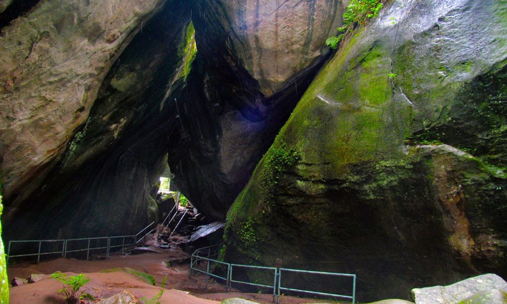 The Edakkal caves are two natural caves at a remote location at Edakkal, 25 km from Kalpetta in the Wayanad district of Kerala in India’s Western Ghats. They lie 1,200 m above sea level on Ambukutty Mala, near an ancient trade route connecting the high mountains of Mysore to the ports of the Malabar coast.